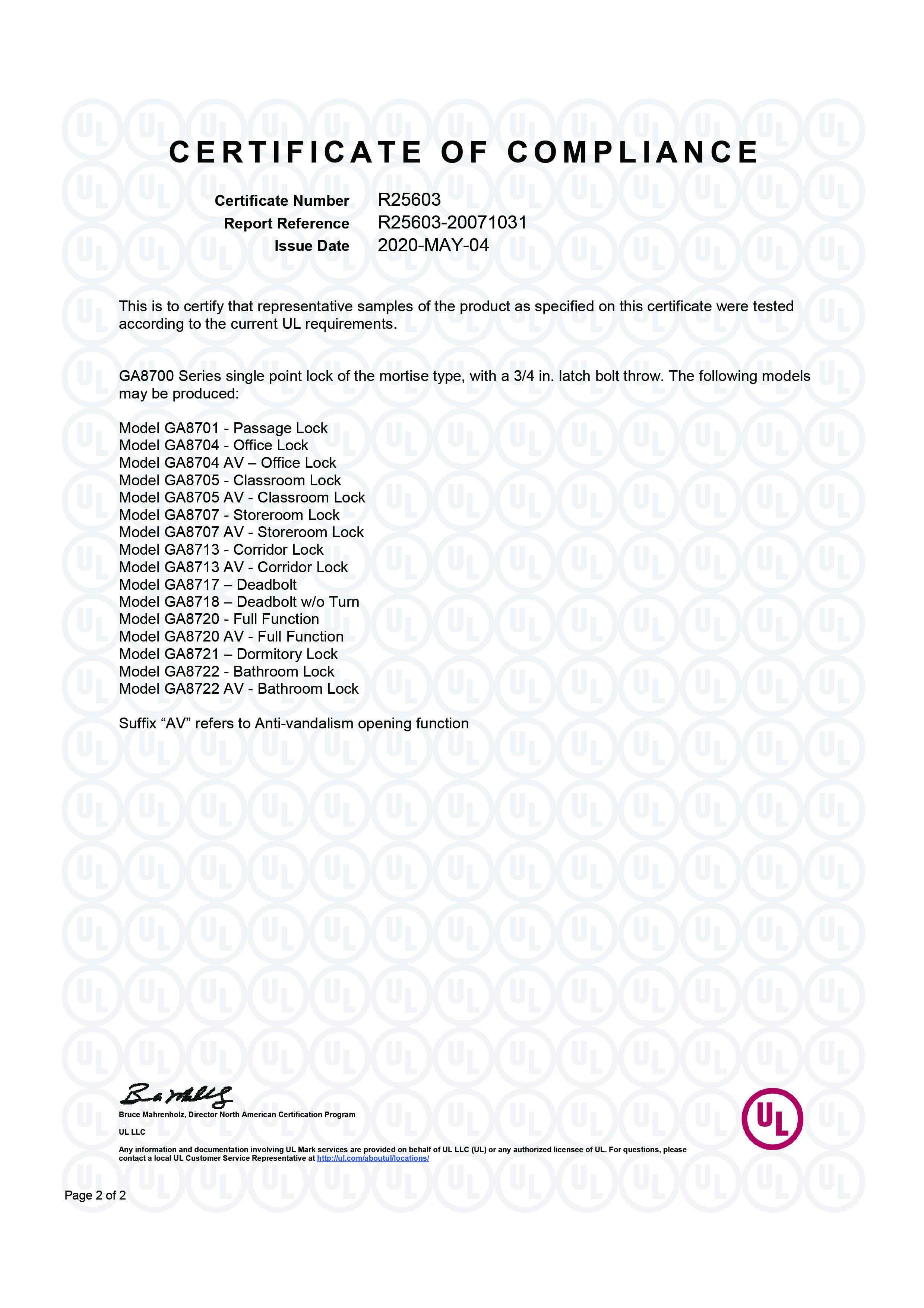 浙江堅迪五金制造有限公司始建于 1995 年。自 2003 開始,公司致力于高標準商業(yè)鎖的研發(fā)工作,并于 2006 及 2007 年,8700 插芯鎖系列獲得美國國家標準 ANSI A 156.13-2005 一級、ANSI A 156.2-2003 二級和美國 UL 10C3 小時防火測試認證。自 1998 年以來,公司不斷提升產(chǎn)品和客戶服務品質(zhì),并獲得了 ISO 9001 的認證。